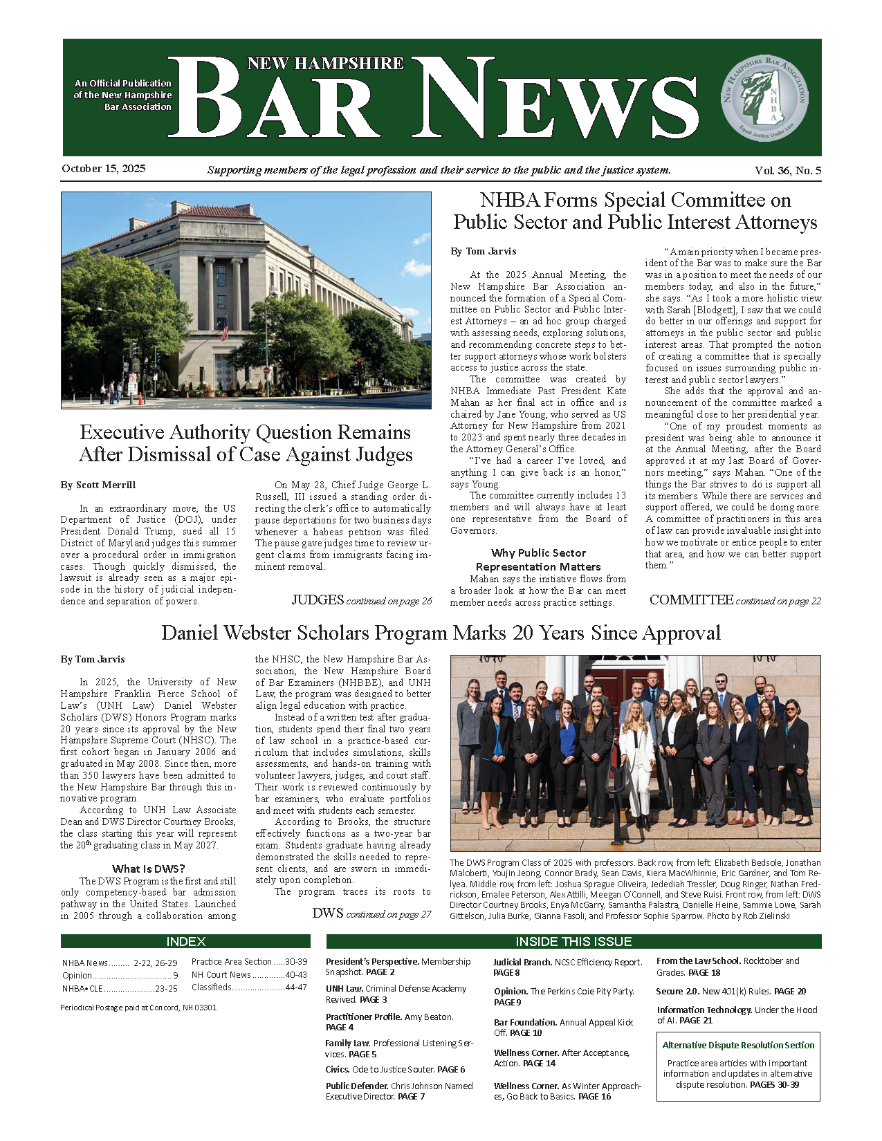 From L to R: New Hampshire Supreme Court Associate Justice Melissa Countway, Chief Justice Gordon MacDonald, Eva Piacentini, Kendra Jozokos, Benjamin Hourdequin, Senior Associate Justice James Bassett, and Associate Justice Patrick Donovan. Not pictured: Addyson Kimball NH Bar Foundation Chair Scott Harris presenting second place award to Addyson Kimball at her senior high school awards … Read more